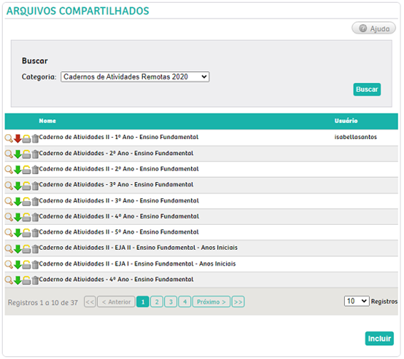 Incluir – Tela destinada à inclusão de arquivos compartilhados. Clique no botão Incluir para Incluir arquivos.